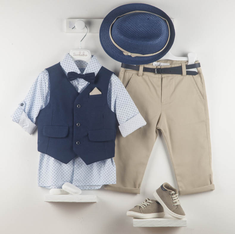 Ο Pierre είναι ένα chic σετ. Αποτελείται από μπεζ παντελόνι, ριγέ σιέλ πουκάμισο και μπλε γιλέκο. Το σετ ολοκληρώνει το μπλε παπιγιόν, η μπλε ζώνη και το μπλε καβούρι.
