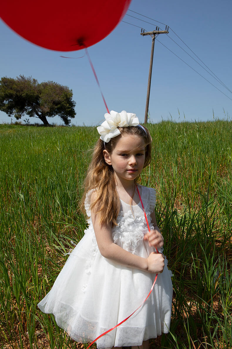 Η Britney είναι ένα ρομαντικό off-white ασύμμετρο φόρεμα από τούλι εξαιρετικής ποιότητας. Είναι διακοσμημένο με μεταξωτά λουλούδια κεντημένα στο χέρι με κρύσταλλα Swarovski. Συνοδεύεται με exclusive στέκα για το κεφάλι με περίτεχνους φιόγκους που θα κάνουν το σύνολο ανεπανάληπτο.
